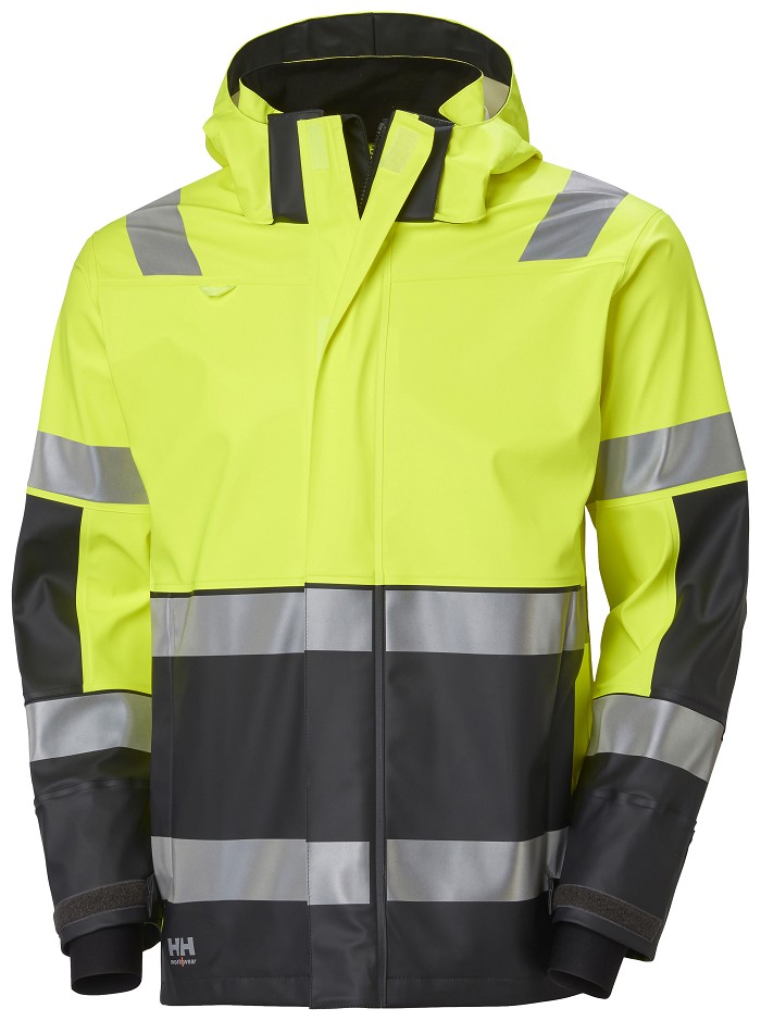 Bunda Alna 2.0 Rain Jacket se vyznačuje odbornými prvky, které udrží vlhké počasí na uzdě. Zůstaňte v pohodlí a suchu díky vnějšímu polyuretanovému zátěru a neoprenovým manžetám. Prodloužená záda chrání váš pas při zvedání, pohybu a ohýbání po celý den. Dvojitá přední klopa této pracovní bundy do deště zadržuje vodu od jejího předního otvoru na zip. Přizpůsobte si svůj střih pomocí nastavitelné kapuce a spodního lemu, obojí s elastickými stahovacími šňůrkami. Při přestávce v počasí sundejte odnímatelnou kapuci. Viditelnost je standardně dodávána s vysoce viditelnou látkou na hrudi a ramenech, stejně jako reflexními pruhy na ramenou, pažích, střední čáře a bocích. Náprsní kapsa na zip YKK® a integrované poutko na ID kartu udrží věci po ruce a v bezpečí.